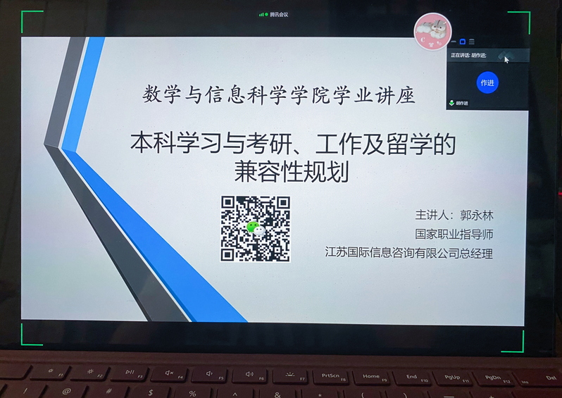 为了让同学们进一步认识本科学习与考研、工作及留学的兼容性规划,买球官网于7月22日下午在线上举办了生涯规划讲座暨实习宣讲会。本次活动由胡作进院长牵头,樊琬老师主持,邀请到国家职业指导师、江苏国际信息咨询有限公司总经理郭永林老师和中国电子文思海辉高校实习项目经理韩汝平老师主讲,一同参与本会的还有买球官网数百名同学。