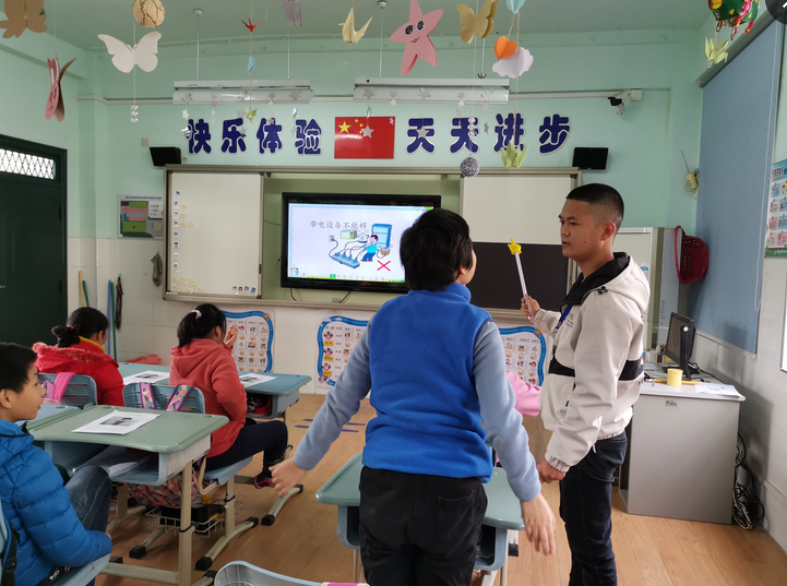 胡院长和颜老师在明七班观摩了教育技术学专业实习生刘佳宝讲授的语文课,课上刘佳宝认真讲解、悉心指导,让学生掌握用电安全相关知识。刘佳宝的课件制作侧重运用动画和图片形式展示,在讲解中考虑了学生特殊性和学习能力,每一个知识点耐心讲解,一遍遍纠正、一遍遍讲解直到每个学生都能掌握。实习生耐心态度深深打动了观摩的领导和老师,深感特殊教育教师的不易,要付出比其他教师更多的耐心、爱心和毅力!