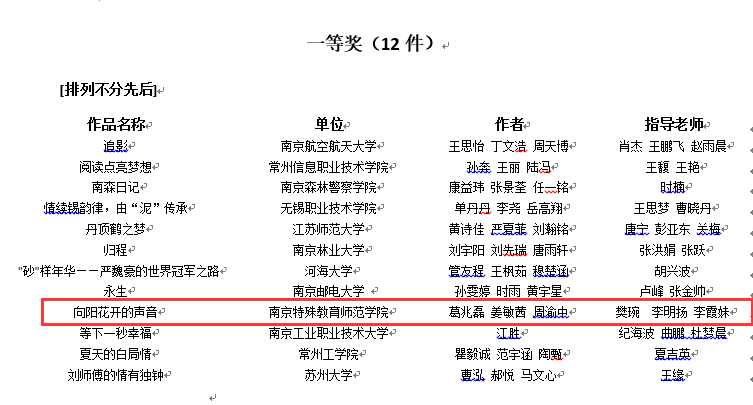 .近日,江苏省教育厅网站公布“江苏省第六届大学生艺术展演”获奖名单。数信与信息科学学院报送的两部微电影作品《向阳花开的声音》、《新时代的新一天》在一众作品中脱颖而出,分别斩获一等奖、三等奖。