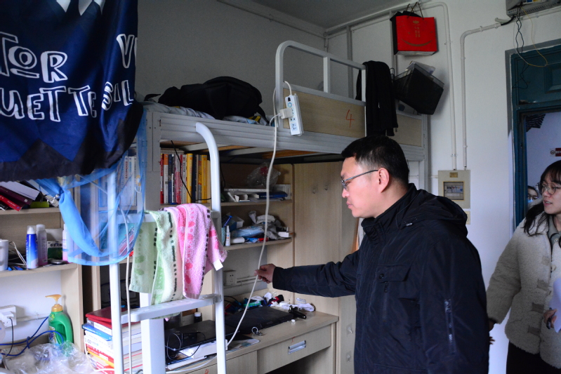 为进一步做好学生宿舍冬春火灾防控工作,帮助学生树立安全卫生意识,确保学生宿舍安全、卫生、文明、和谐,12月28日下午,买球赛十大平台开展了宿舍安全隐患大排查暨三和”宿舍巩固月活动。买球赛十大平台党总支书记李宏伟、辅导员樊琬,及部分学生干部组成专项检查小组,前往学生宿舍进行安全检查。