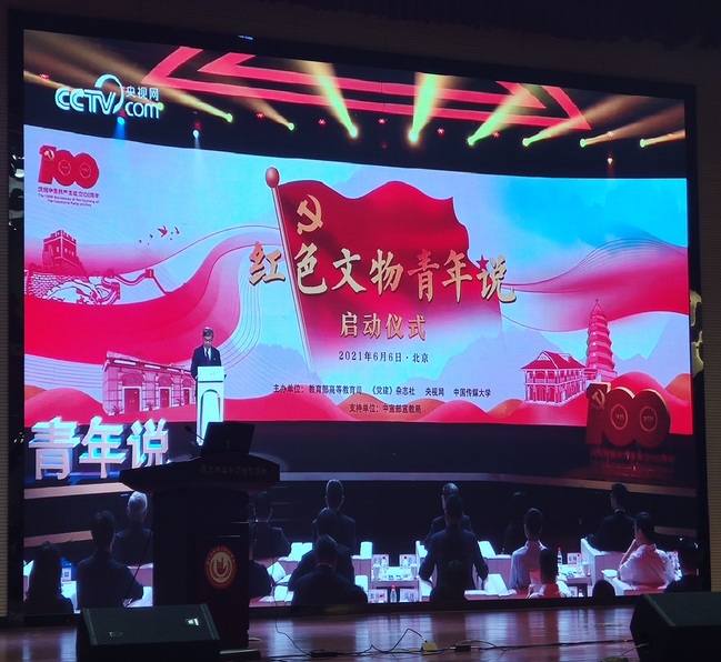 《红色文物青年说》是中国传媒大学在教育部高教司的指导和《党建》杂志社的支持下,联合央视网制作并推出的百集视频“微党课”。 以“红色文物,青春讲述”为主题,以“青年人视角、故事化讲述、创新性呈现”为特色,通过来自北京师范大学、中国传媒大学、中国人民警察大学、中国人民大学的学生代表在启动仪式上讲述其中四个红色文物的故事以及文物背后所承载的爱国主义精神,用融媒体方式将“党课”推向全国,落实习近平总书记关于“用好红色资源、讲好红色故事、搞好红色教育,让红色基因代代相传”的重要精神,庆祝党的百年华诞。