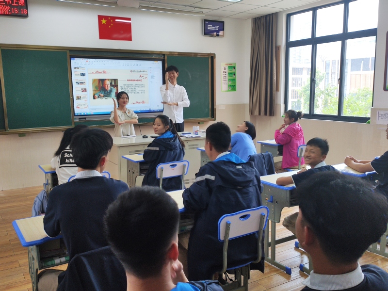 在随后开展的“共学党史 共同成长”活动中,买球赛十大平台党史学习教育宣讲团走进镇江特教中心的班级课堂。学院宣讲团成员、学生党员陈晓贤、罗燕为中心校的听障、视障学生进行了一次精心组织且别开生面的党史宣讲。两位宣讲团成员分别选择了中学生耳熟能详的科学家钱学森,及中国盲文之父黄乃的故事为主题,向孩子们讲述了先辈为党和国家、为人民幸福不畏艰难、勇于探索、奉献一生的故事。宣讲的内容切点很小,但承载的党史内容很丰富。宣讲团最后还勉励学生们更要跟党走、听党话,自立自强,好好学习,奋斗出更加精彩的绚丽人生。