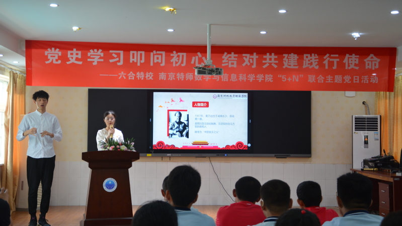 6月30日上午,买球赛十大平台党总支与六合区特殊教育学校党支部开展“5+N”联合主题党日活动,推动党史学习教育走深走实。买球赛十大平台党政负责人、学生党支部全体党员、学院宣讲团成员和部分教师党员参加了此次活动。