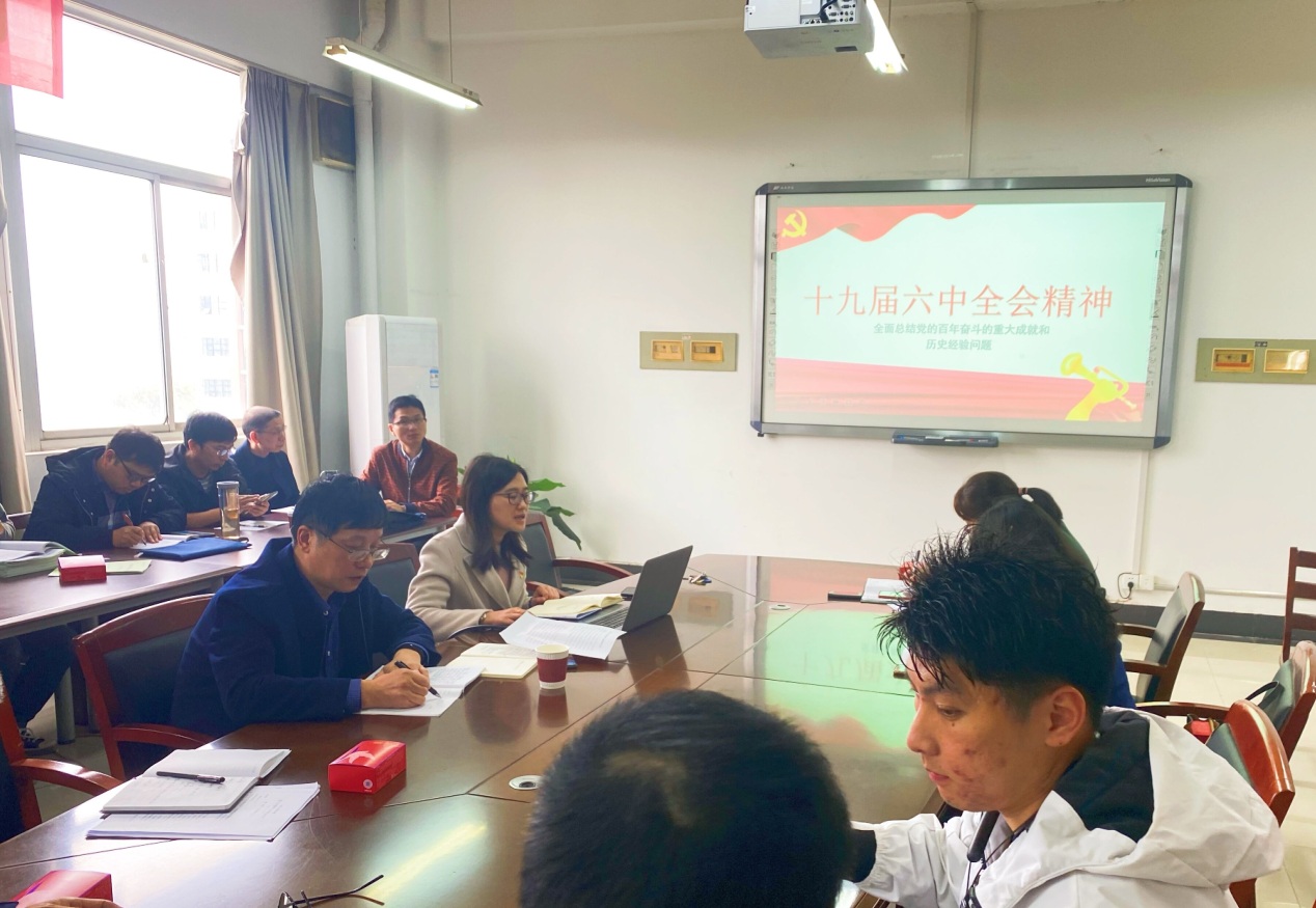 会上,丁雯书记带领全体党员、教师着重围绕“党的十九届六中全会审议通过的两个重磅文件”、“百年奋斗的重大成就”、“百年奋斗的历史意义”、“百年奋斗的历史经验”等内容展开深入学习。