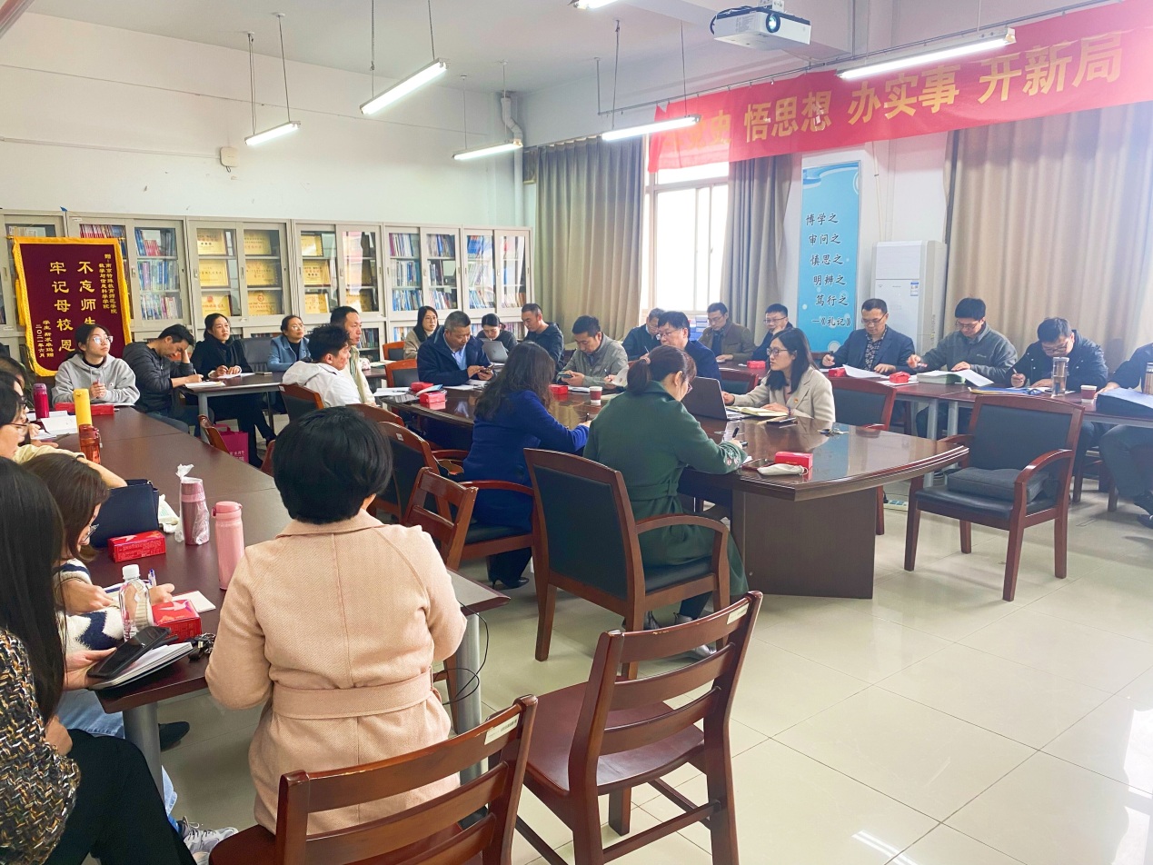 会议强调,全体党员、教师要迅速把思想和行动统一到党的十九届六中全会精神上来,以高度的政治自觉、思想自觉和行动自觉,把学习贯彻党的十九届六中全会精神与学习习近平新时代中国特色社会主义思想结合起来,大力弘扬伟大建党精神,勿忘昨天的苦难辉煌,无愧今天的使命担当,不负明天的伟大梦想,以史为鉴、开创未来,埋头苦干、勇毅前行,为实现第二个百年奋斗目标、实现中华民族伟大复兴的中国梦而不懈奋斗!(文/李霞妹 图/樊琬 审核/李宏伟)