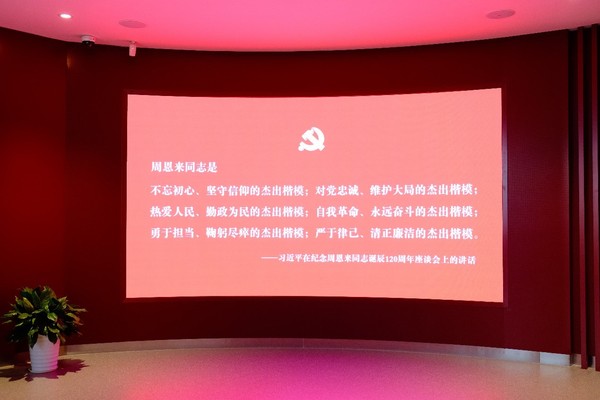 在周恩来总理的铜像前,2019级学生党员刘露露带领大家重温入党誓词并致敬以周恩来总理为代表的老一辈无产阶级革命家。