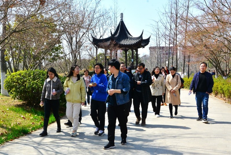 一阵春风一阵暖,一路春意正盎然。在徒步前往燕子矶公园的过程中,老师和同学们意气风发、豪情满怀,一边欣赏着沿途的风景一边畅谈学习、工作、生活。在谈笑间师生们步履带风,尽情抒怀,充分体现了买球官网师生之间团结友爱,相互帮助,和谐相处的良好精神风貌。到达燕子矶公园后,大家沐浴阳光自由漫步,闲观云卷云舒,探寻浓浓春意,并在返回校园前合影留念。