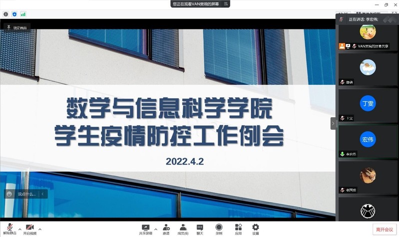 为落实学校统筹推进疫情防控工作有关精神,确保清明假期学院疫情防控不掉线,保障学生安全工作持续推进。4月2日20时,买球赛十大平台召开学生疫情防控工作例会,学院党总支书记李宏伟主持会议,党总支副书记丁雯、全体辅导员参会。