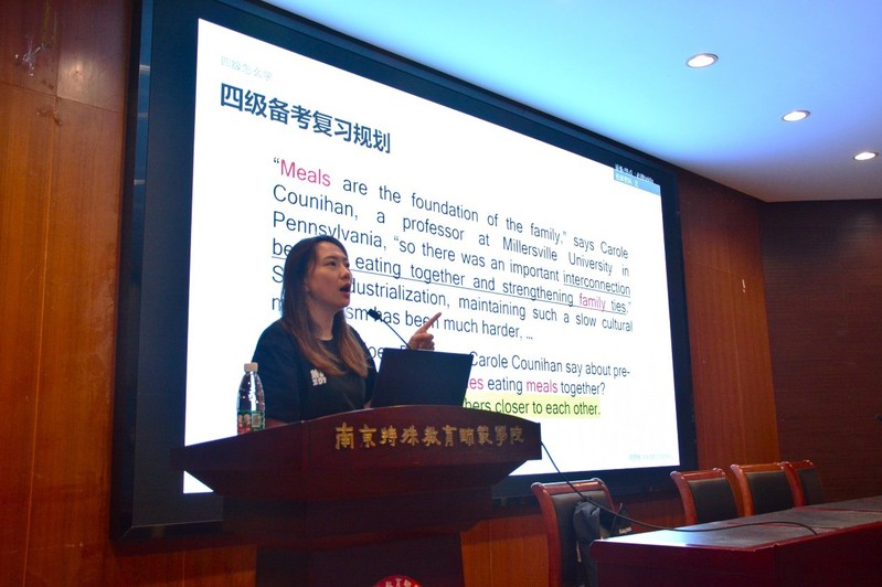 为提高同学们英语水平,迎接即将到来的全国英语四级考试,6月2日,买球赛十大平台在博韵楼114开展英语四级复习规划辅导讲座,本次讲座由新东方王雅洁老师进行主持与讲授,面向全院即将参加四级考试的同学。