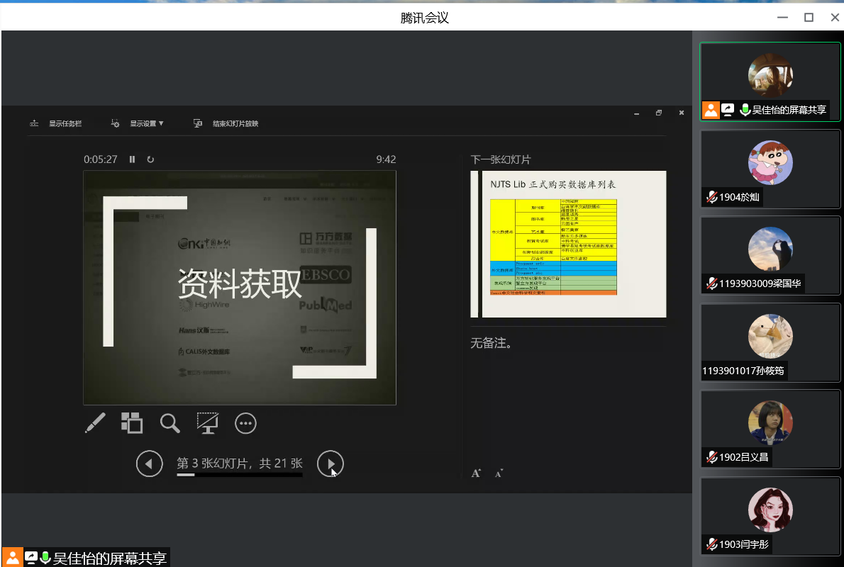 一小时的讲座内容丰富实用,通过孙老师的分享介绍,大家进一步学习了信息检索及文献阅读,文献整理的方法,提高了自身信息获取等综合技能。(文/张居晓 吴佳怡 )