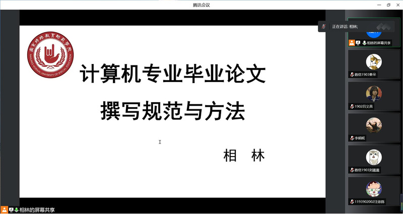为进一步规范2019级计算机科学与技术专业毕业论文写作,提高学生论文撰写能力,买球赛十大平台于9月9日上午,相林副教授给2019级计算机科学与技术专业毕业生开展《计算机专业毕业论文撰写规范与方法》讲座。