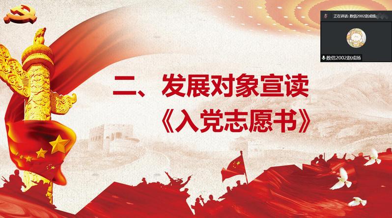 为做好党员发展工作,进一步健全和完善支部组织建设,2022年12月30日,数信与信息科学学院学生党支部在腾讯会议召开2022年下半年党员发展大会。买球赛十大平台学生党支部全体成员参加此会议,会议由支部组织委员丁力主持。
