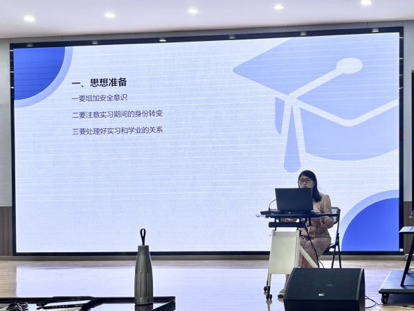 丁雯副书记对实习工作进行部署,并结合实习中出可能出现的问题强调,一要做好充足的思想准备,增加安全意识,保证实习工作顺利进行;二要注意实习期间的身份转变,处理好实习期间与指导老师和学生之间关系,做到“谦虚谨慎而不自卑,端正态度但不自负”;三要处理好实习和学业的关系,让实习经验资源为毕业论文的开展打下坚实基础。