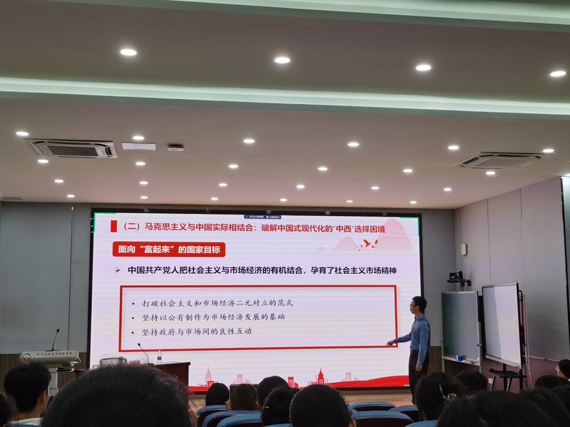 为深入学习宣传贯彻党的二十大精神,认真学习中国式现代化理论,5月24日下午,马克思主义学院副院长张九童为买球赛十大平台全体师生党员及入党积极分子讲授主题为“以‘中国式现代化’若干理论和实践课题的思考”的教育专题党课。会议由学院党总支副书记丁雯主持。