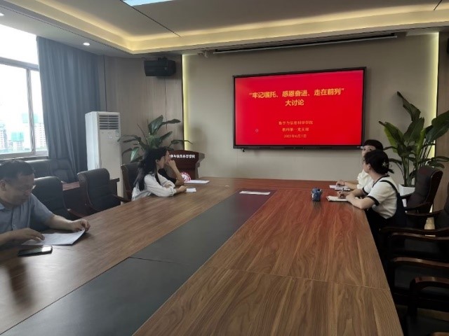 6月7日下午,买球赛十大平台教师第一党支部开展了“牢记嘱托、感恩奋进、走在前列”集中交流研讨会。会议由教师第一党支部书记戴玥主持。
