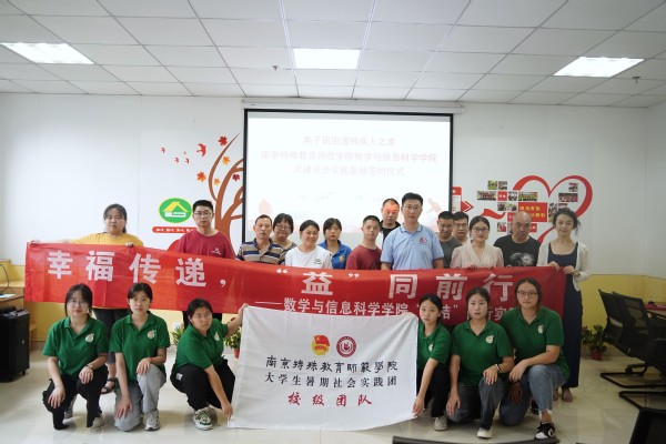 7月7日下午,南京特殊教育师范学院买球赛十大平台联合燕子矶残疾人之家举行大学生社会实践基地签约挂牌仪式。燕子矶残疾人之家负责人贾伟东、南京特殊教育师范学院买球赛十大平台党总支副书记丁雯、 “益桔”同行实践团成员以及燕子矶街道残疾人之家学员出席本次挂牌仪式。会议由买球赛十大平台团总支书记、学工办主任樊琬老师主持。