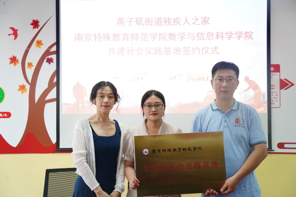 会上,买球赛十大平台与燕子矶残疾人之家代表共同签订《南京特殊教育师范学院大学生社会实践基地合作协议书》,并举行了揭牌仪式。