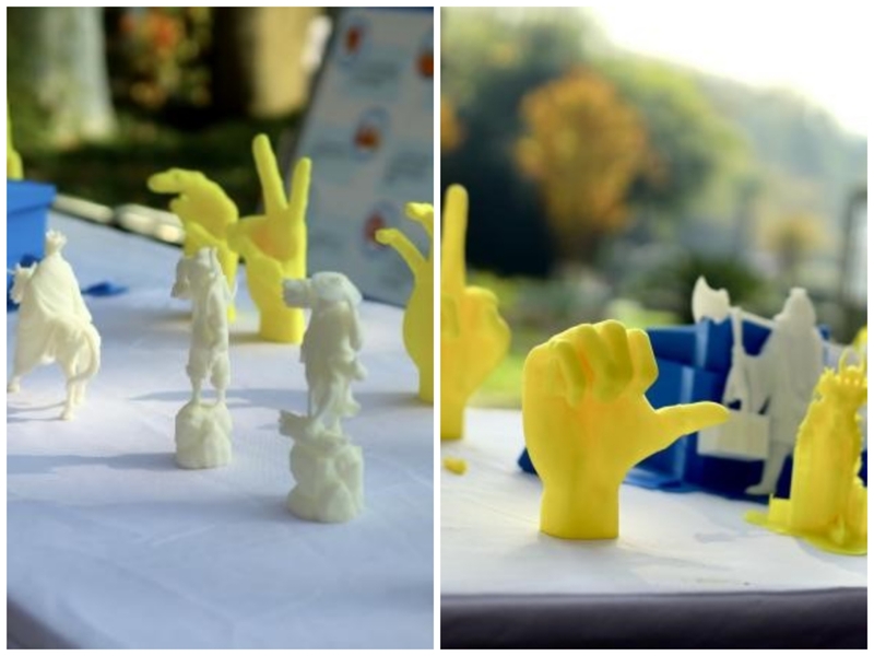 在3D打印助残作品展示区,展台上放着学院双创实验室通过3D打印技术制作的手语、假肢、美术设计等模型。展示现场不少同学被精湛的3D打印作品所吸引,驻足观看,赞叹品评,志愿者们还为同学们讲解了3D打印的相关知识、3D打印的工作原理以及3D打印在假肢等最新康复辅具产品上的创新技术。