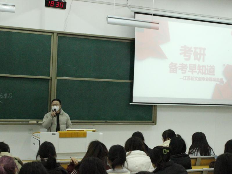 为帮助23级同学更好地了解考研的难点和重点,明确专业的就业方向和发展前景,更好地掌握大学阶段的学习方法。11月30日,买球赛十大平台召开“考研,备考早知道”学涯规划与大学学习经验分享会,由江苏新文道专业课项目组老师龚向钦主讲。