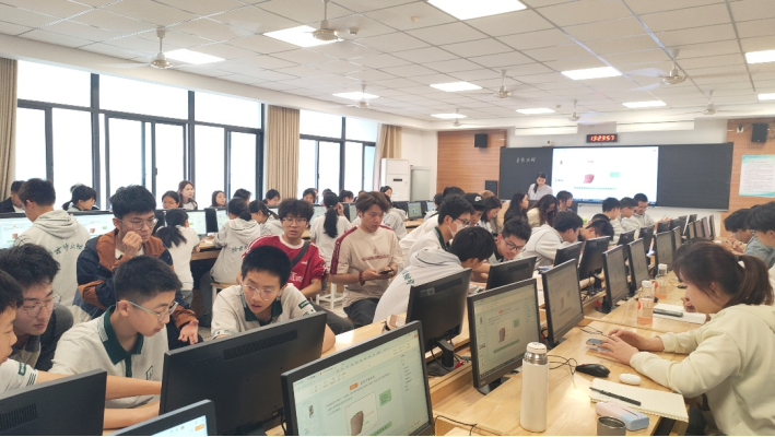 在讲座中,同学们在录播教室仔细聆听了王雅静老师和王俊贤老师为我们带来的讲座。两位老师分别向我们介绍了教学管理方法和新城中学的学校特色,使我们对新城中学有了更深入的了解和认识。
