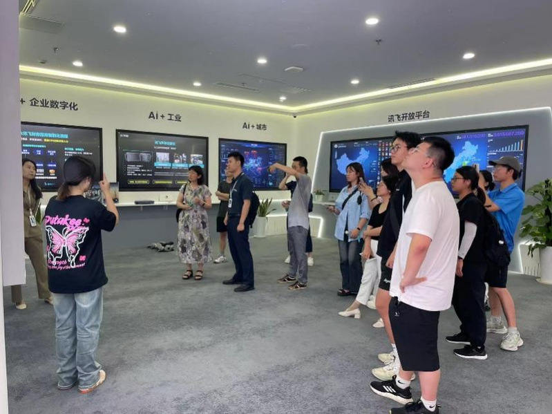首先师生们参观了科大讯飞公司的创新实验室、产品展示区以及研发中心,深入了解人工智能技术的最新发展和应用。在智能语音识别和机器翻译技术的展示环节,学生们亲身体验了科大讯飞的科技成果,感受到了科技如何帮助他们更好地与世界沟通。