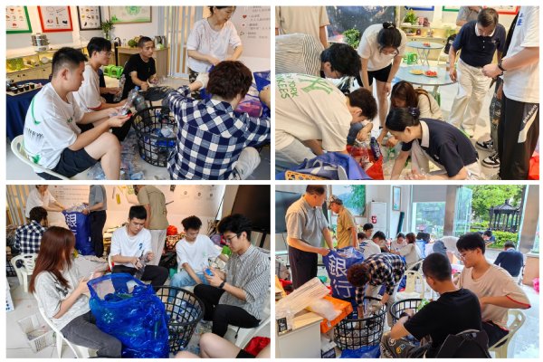 课程结束后,团队成员们积极参与到社区垃圾分类的实操中。在南京21世纪环保教育站志愿者的呼吁和带领下,社区居民每周都会将家里收集的可回收垃圾送至环保站,进行集中分类后统一处置。环保站的志愿者们很多已经投身环保志愿事业长达58年,在分享交流的过程中,当团队成员们问到“做环保的初衷是什么?”这一问题,志愿者们表示:垃圾分类为的是让资源回收再利用,这是爱护地球,也是爱护人类自己。环保志愿者们用实际行动守护蓝天白云、绿水青山,志愿者们的精神让团队成员们更加坚定了致力环保的决心。同时,团队成员也从环保志愿者身上学习了丰富的垃圾分类知识和环保宣讲技巧。