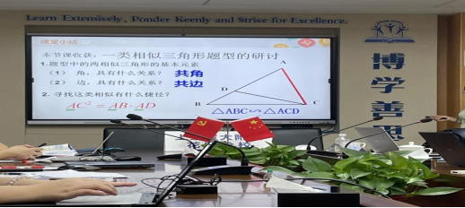除了解决具体的题以外,之后仍有老师对该题目中所出现的相似三角形知识体系里的“共边共角”这一特殊的几何模型进行讨论,针对如何在教学中渗透该模型,让学生在解题中灵活运用该模型,进行了探讨。