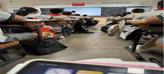 与此同时,实习学生有幸参与了《把握中考趋势,深耕课堂教学》的数学教研活动。该活动主要针对于24年上海中考数学的第25题即最后一题进行剖析,由蒋圣臣老师讲述学生在解题时所遇到的困难点,以及该题目多种的解题思路,抛砖引玉,使得上海对外经贸大学附属松江实验学校的数学组教师们激情探讨,实习学生也在他们的讨论中汲取知识与解题和教学的经验。