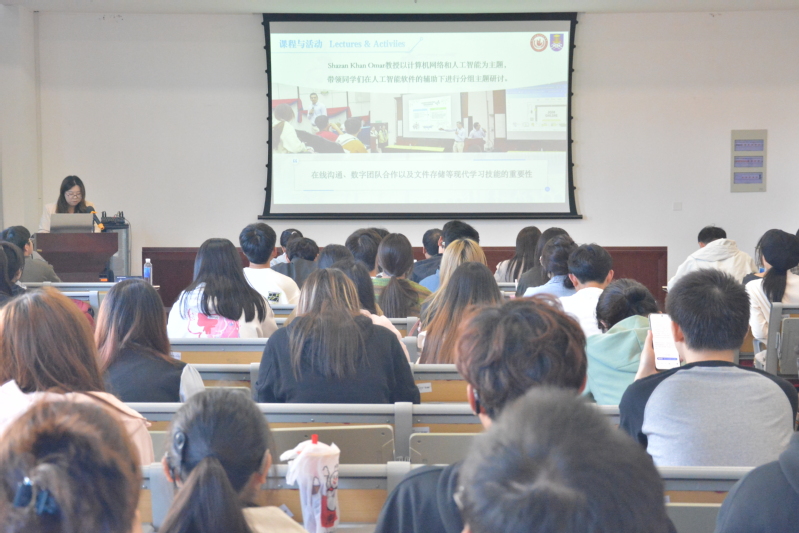 分享会上,陈仲珊副院长首先向学成回国的团队表示了祝贺,同时,针对本次研学活动开展的背景、目的和意义进行了详细阐述。随后,研学团组带队老师朱思橙详细介绍了此次研学项目的行程安排、学习内容、日常生活、文化活动和研学收获,回顾了研学团在马来西亚玛拉工艺大学为期一周的交流、体验、学习过程。朱思橙老师通过播放此次研学活动的全程纪录短视频,展示了研学团组在马来西亚期间从全英文授课环境到专业化学术交流,从文化探索到异域美食体验,从多元文化的碰撞交融到跨越国界的珍贵情谊,欢乐而难忘的瞬间一一浮现,让大家体验到了此次研学之旅的独特风采和魅力。