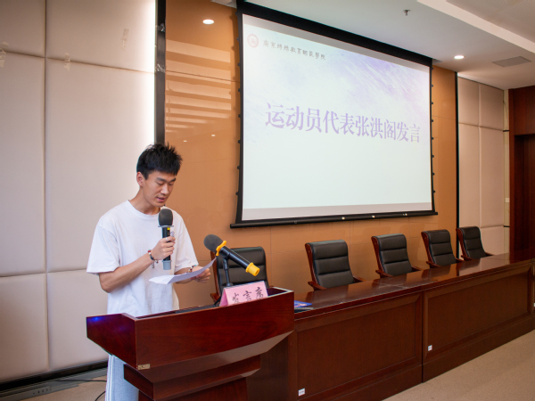 优秀运动员代表张洪阁同学在发言中强调了拼搏和团队协作的重要性,同时真诚地表达了对学院提供展现平台和工作人员的大力支持的感激;优秀志愿者代表刘烨则分享了服务过程中的温暖瞬间:“当为运动员递上温水时收获的那一声‘谢谢’,让我深刻感受到志愿服务的意义。”