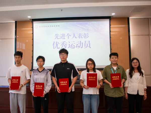 在暖场视频中,运动员们如离弦之箭般的冲刺、如飞燕凌空般的跳跃,志愿者们穿梭于各服务点的忙碌身影,开幕式方阵整齐划一的步伐与创意十足的表演……一幕幕高燃画面将现场氛围推向高潮,大会在掌声与欢呼声开始。颁奖环节,丁雯书记为优秀运动员颁发优秀证书,肯定他们以汗水浇灌荣誉、以坚持诠释热爱的体育精神;樊琬老师为优秀志愿者授予证书,赞许他们以无私奉献传递温暖、以责任担当书写青春;张国盛、丁力、朱思橙、李昀熹四位辅导员老师分别为“文艺之星”“最佳方阵”等荣誉获得者颁发奖项,勉励学子们全面发展、追求卓越。