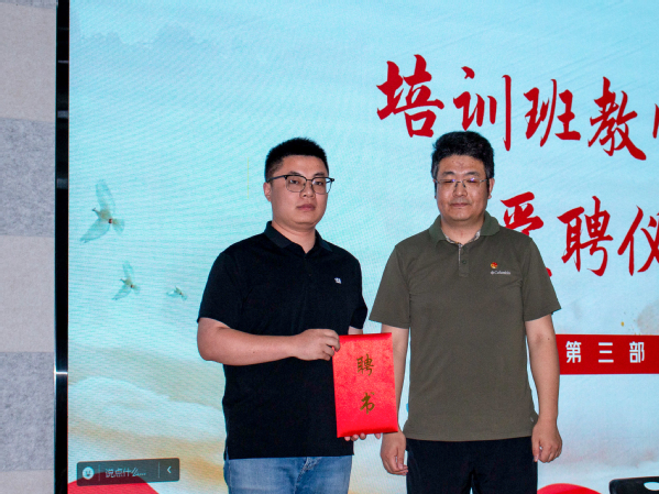 现场举行教师聘请仪式,李永康书记为授课教师代表、教育科学学院老师陈宇颁发了聘书。