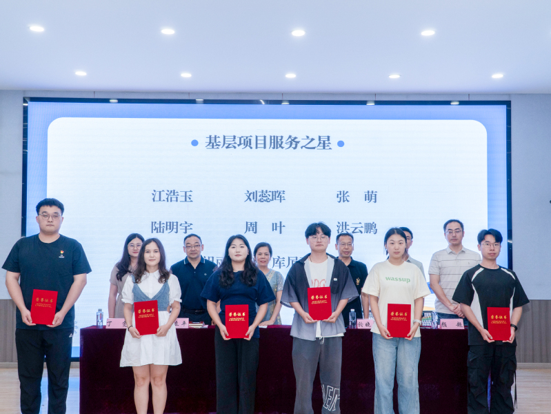 在表彰环节,人工智能学院副院长於晓庆老师、副院长王立平老师、十大买球官方网站院长助理颜超老师分别宣读了优秀“基层项目服务之星”“升学之星”和“就(创)业之星”的表彰决定,学院领导班子向获奖学生颁发荣誉证书。